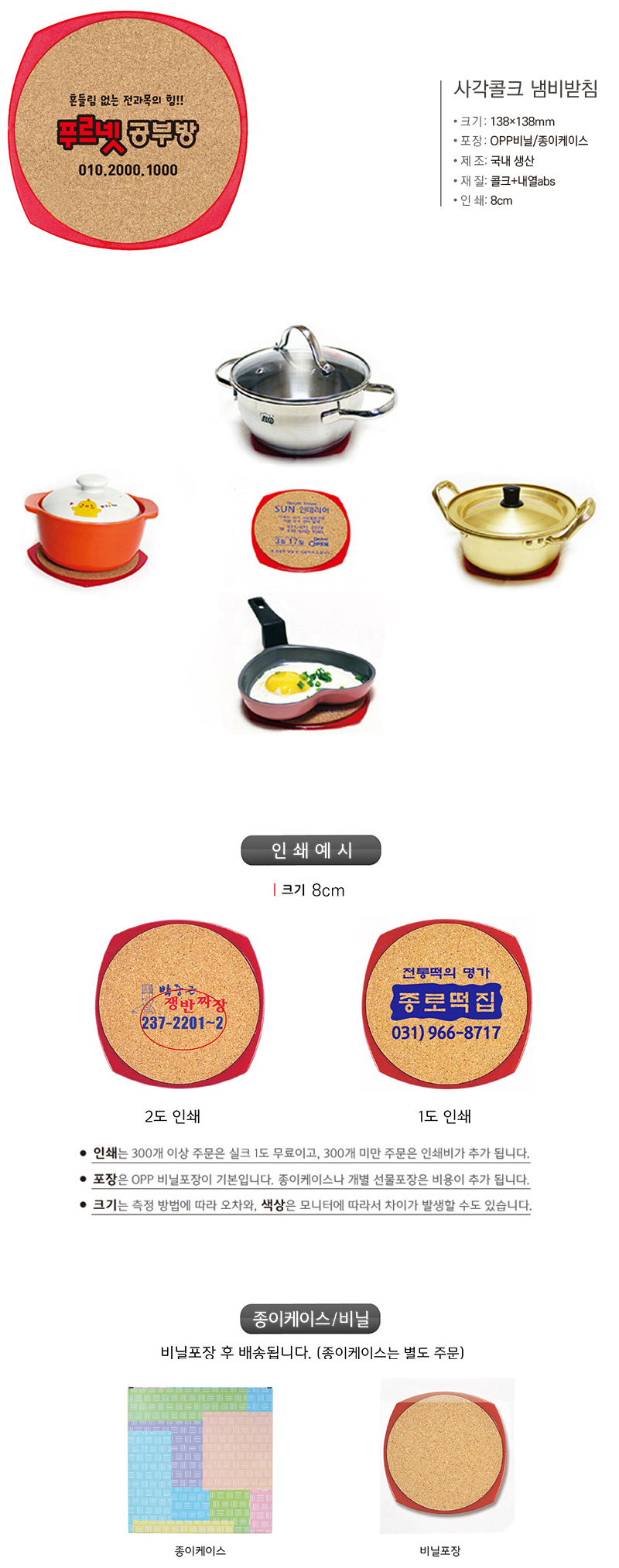 •Size : 138x138mm ※ 기본 OPP포장 기준(종이케이스 포장시 50원 추가)