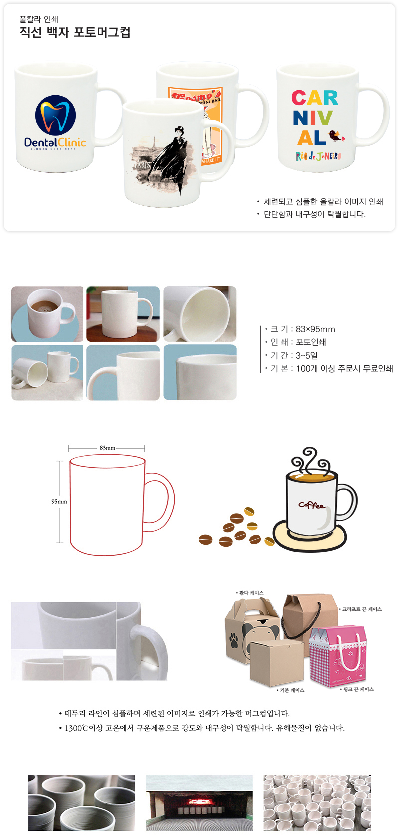 •기 본 : 100개 이상 / 앞면인쇄기준 •Size : 83Øx95mm ※ 1도인쇄 포함 / 2도이상 칼라인쇄 별도 문의