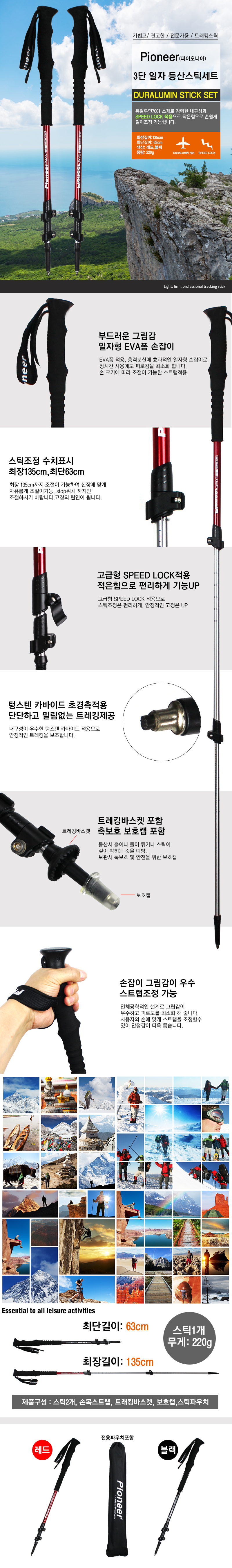 파이오니아 3단 등산스틱세트