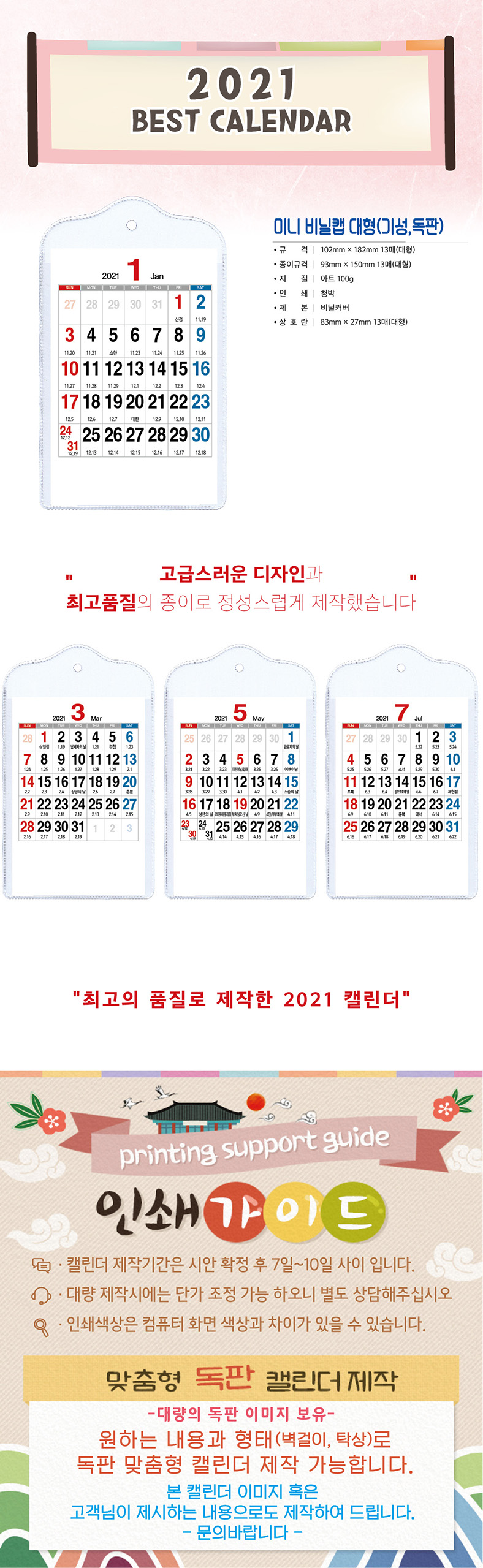 •특대형·대형·일반형Size : 102×182/94×160/84×140mm •특대형·대형·일반형 인쇄면Size: 93×150/86×131/75×114mm •수량 : 1,000부이상