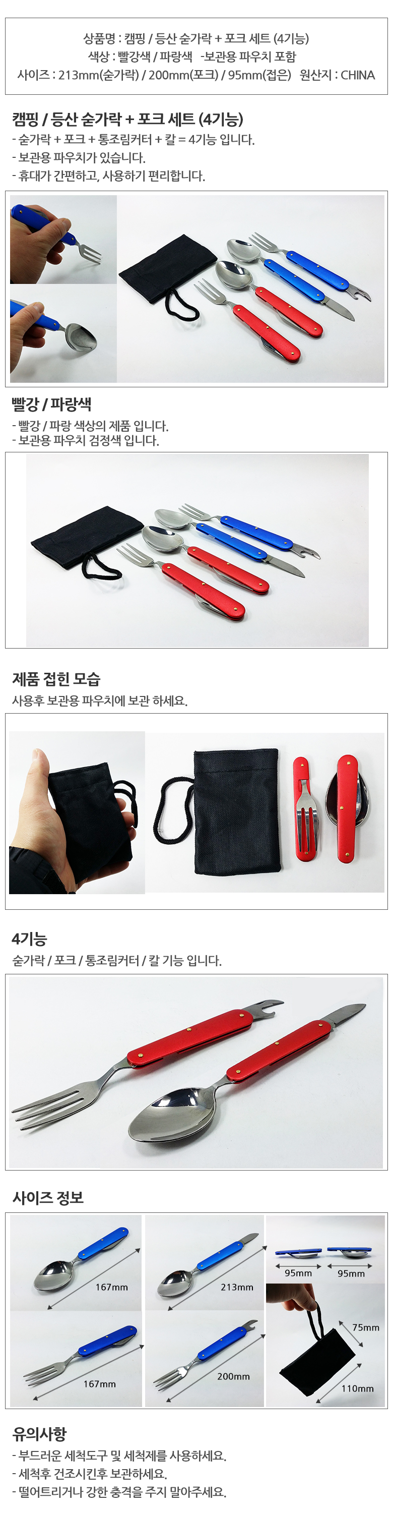 •숟가락, 포크, 나이프, 통조림커터 •보관용 파우치