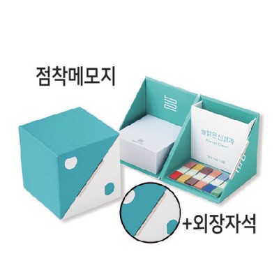 | 기타사항 | •85 x 85 x 85mm •내지 70 x 76mm •점착메모지 300매/6색팝업필름10매 •박스 컬러인쇄, 내지 먹1도 •기본수량 100개 |