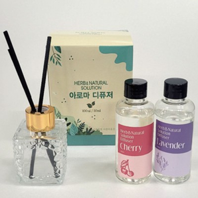 | 기타사항 | •용량 : 100ml x2개 3가지향중 선택 •10x9x13cm (박스) •고급유리병,100mlx2ea,고급스틱 |